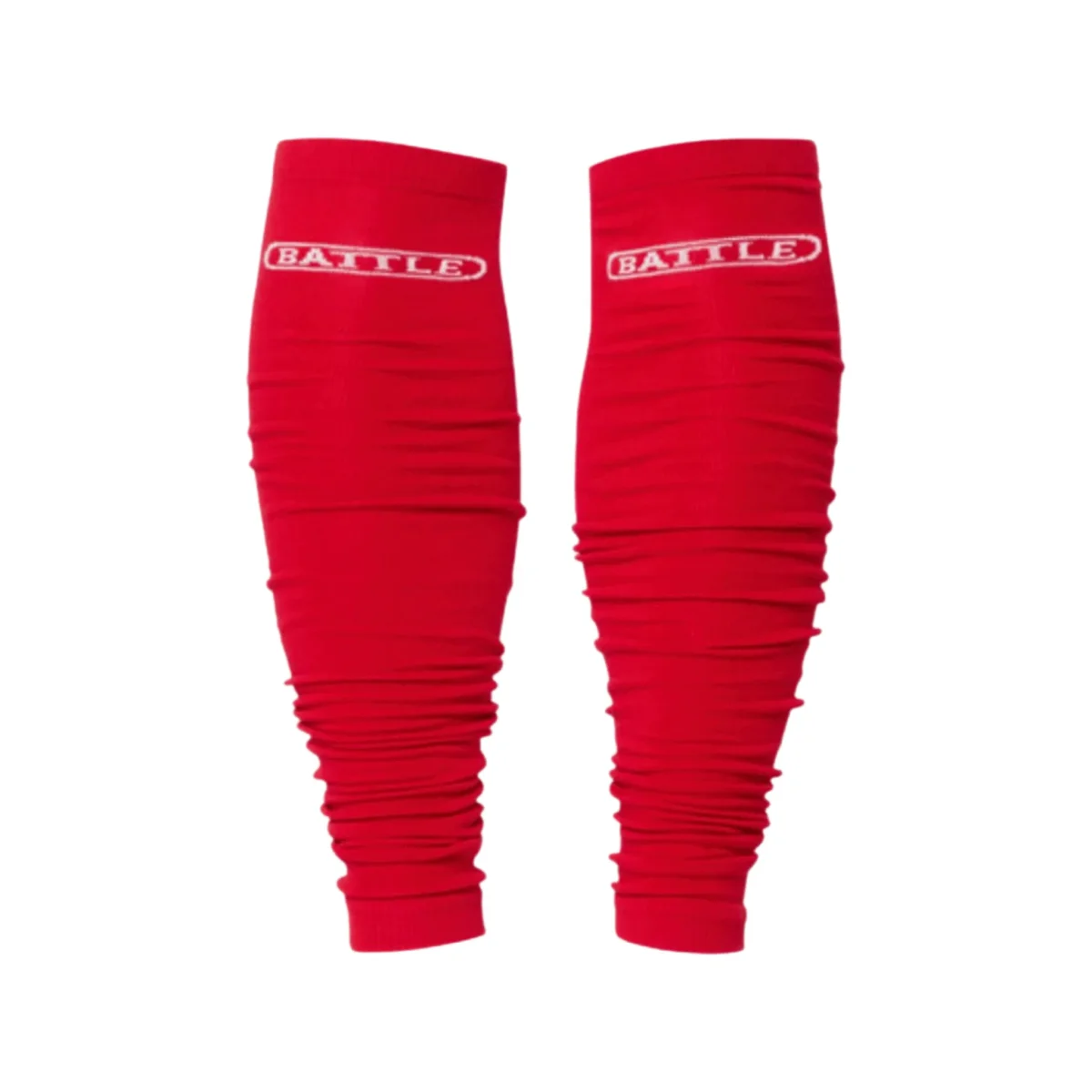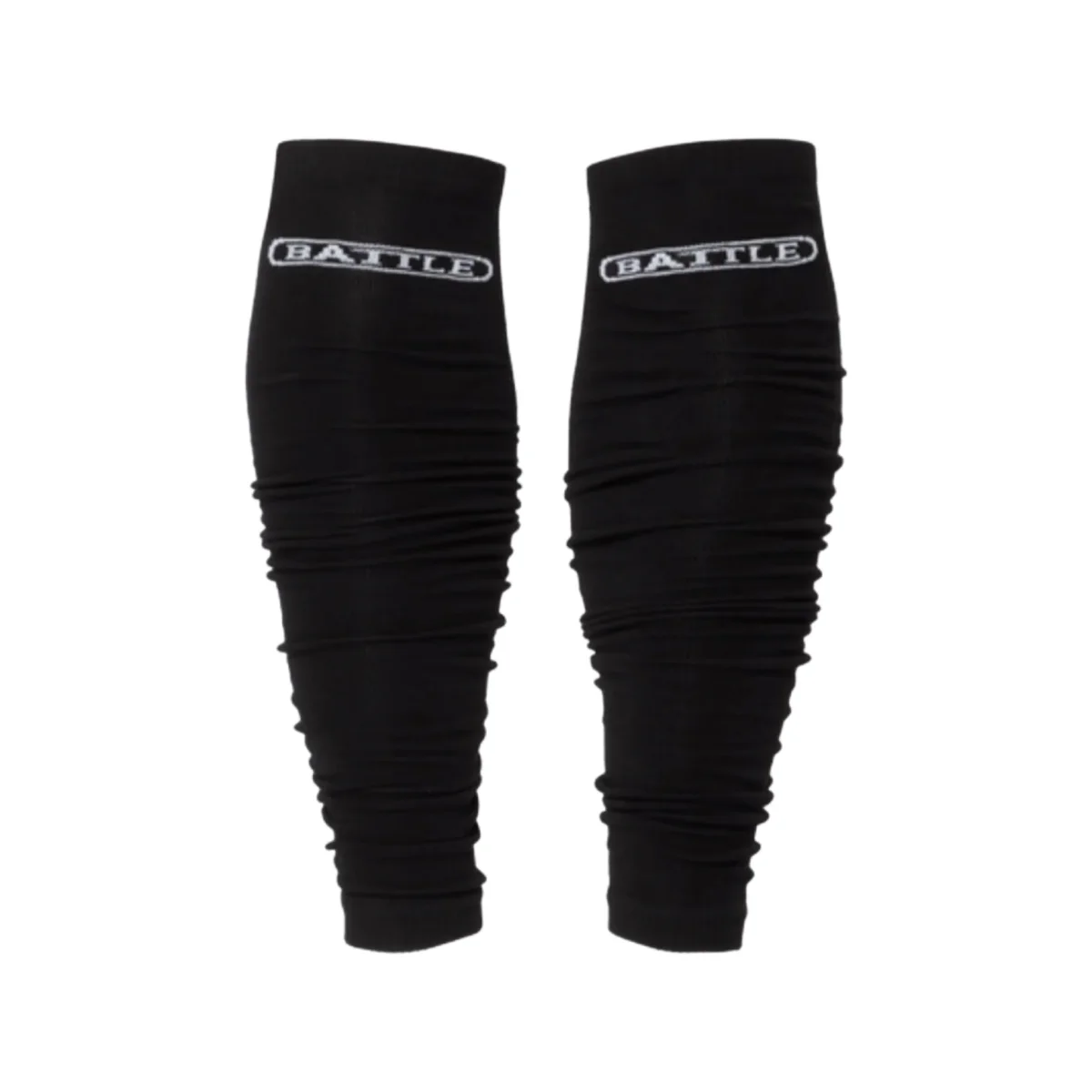 Introducing the Battle football leg sleeves, the ultimate addition to elevate your performance on the football field. Designed for athletes who desire to showcase their individual style while making a statement, these leg sleeves provide the perfect finishing touch. With their distinctive scrunchie appearance, they offer the illusion of a multi-layer wrap, all achieved with a single layer of premium fabric. Crafted from high-quality 4-way stretch materials, these leg sleeves ensure optimum flexibility and durability.