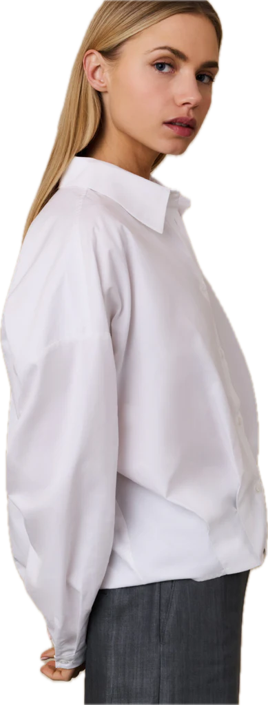Fabriquée d’un doux coton et d’une coupe oversize. Elle est conçue avec des manches longues, un col chemise et une fermeture à boutons. Les subtils détails plissés à l’avant créent un look chic. Parfaite pour des tenues professionnelles ou décontractées.