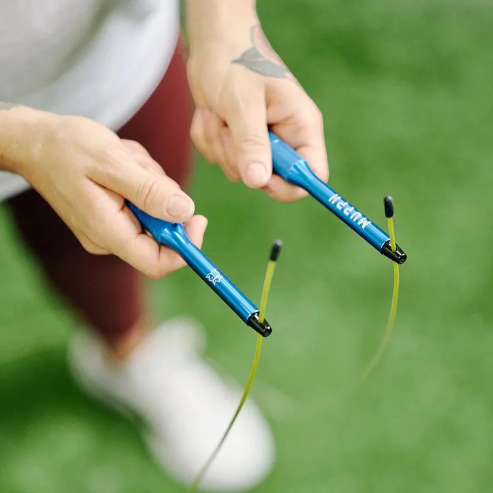 Notre corde à sauter DOUBLE KING conçu par Murph® est tout ce que vous avez besoin afin de passer à un autre niveau avec vos sauts doubles. Nous avons intégré les meilleurs bearing sur le marché pour un maximum de roulement et ainsi un mouvement plus rapide du câble. Les poignées en aluminium ergonomiques sont très confortables et procurent une excellente Grip pour les longues séries. L’outil de resserrement de câble est dissimulé au bas de la poignée et vous permet un ajustement rapide. Le câble gainé est de 2.5mm. Une pochette de transport est inclus pour un rangement facile.