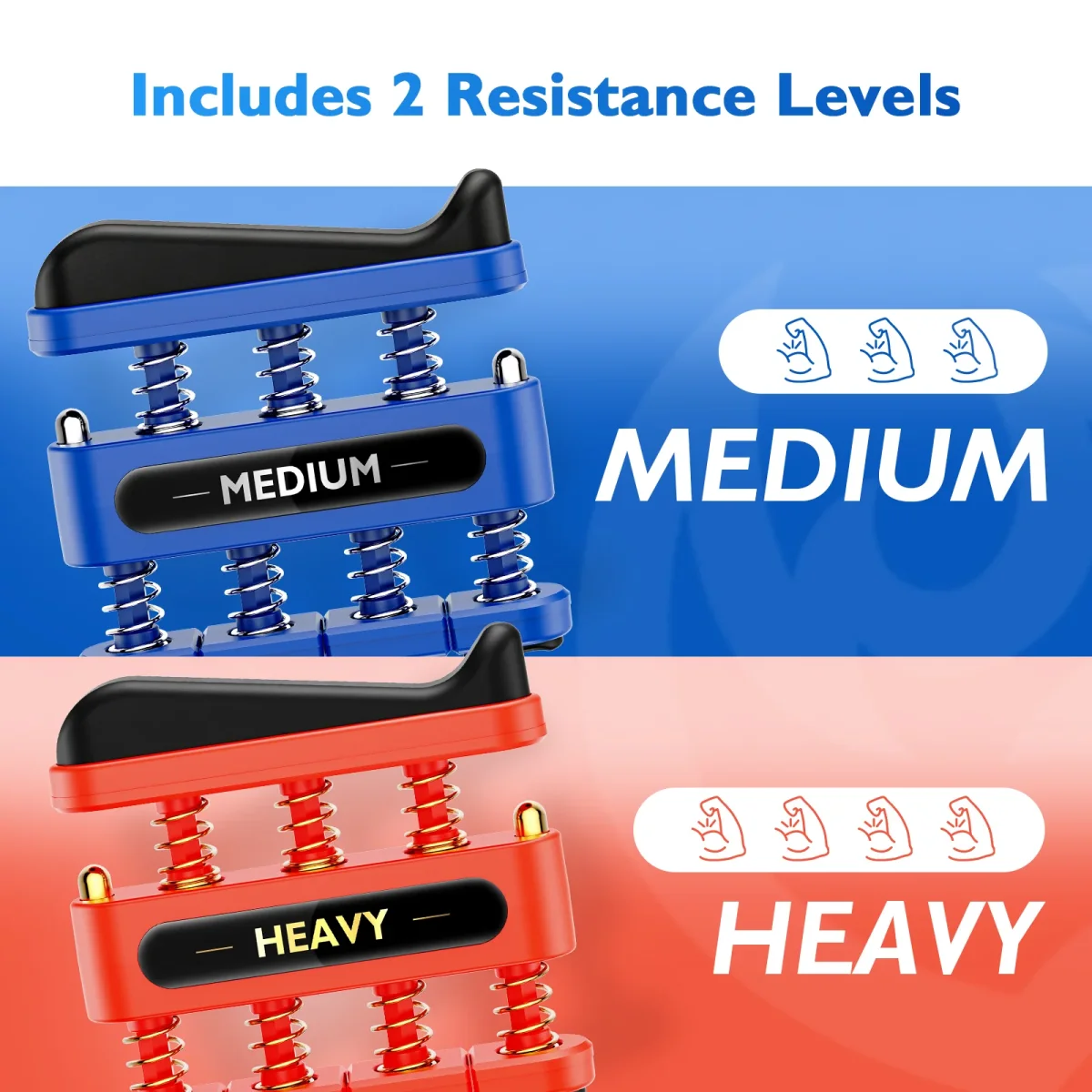 - 𝗖𝘂𝘀𝘁𝗼𝗺𝗶𝘇𝗮𝗯𝗹𝗲 𝗥𝗲𝘀𝗶𝘀𝘁𝗮𝗻𝗰𝗲 𝗳𝗼𝗿 𝗔𝗹𝗹 𝗧𝗿𝗮𝗶𝗻𝗶𝗻𝗴 𝗟𝗲𝘃𝗲𝗹𝘀 – Featuring Medium (7 lbs) and Heavy (9 lbs) resistance, this set allows you to gradually increase the intensity of your workouts. Ideal for users looking to strengthen their hands, improve flexibility, or recover from injuries, you can adjust your routine as you improve.