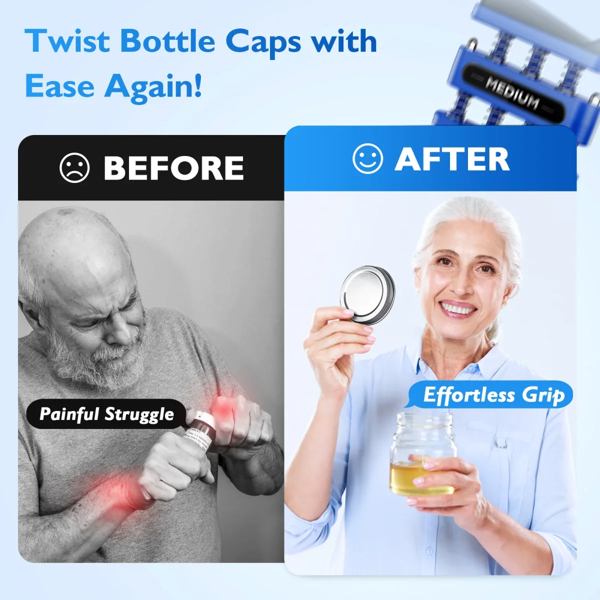 | Style | Ergonomic finger strengthener, color-coded for easy use |