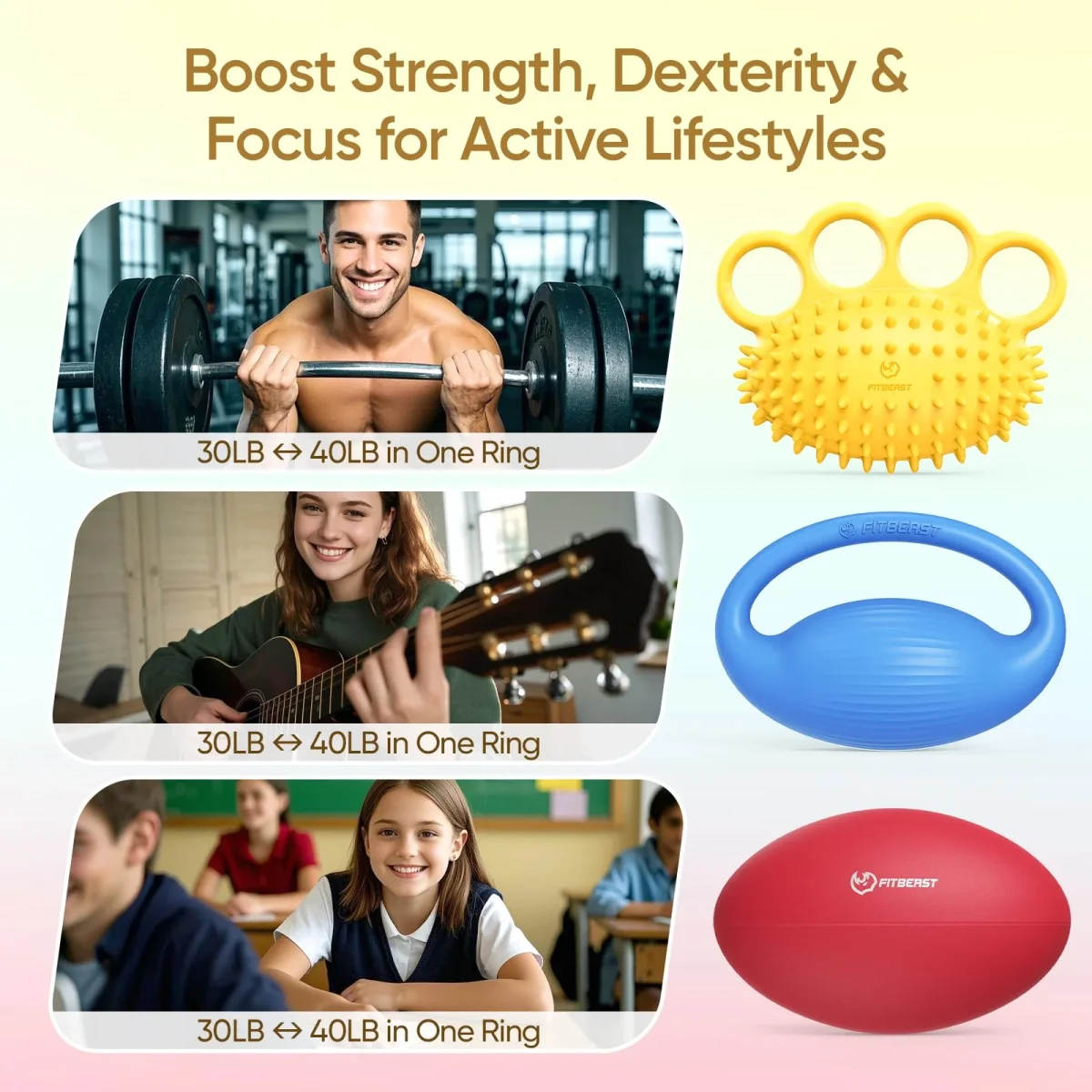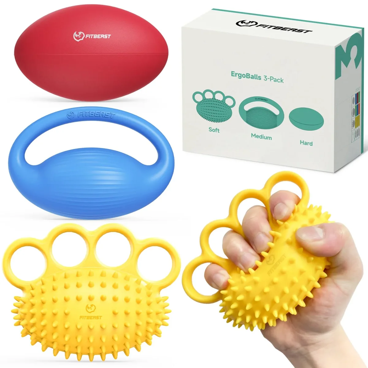 FitBeast Hand Exercise Ball Set–3 Pack Hand Squeeze Balls for Hand Therapy, Grip Strength, Finger & Wrist Training, Stress Balls for Adults, Ideal for Rehab, Arthritis, Carpal Tunnel