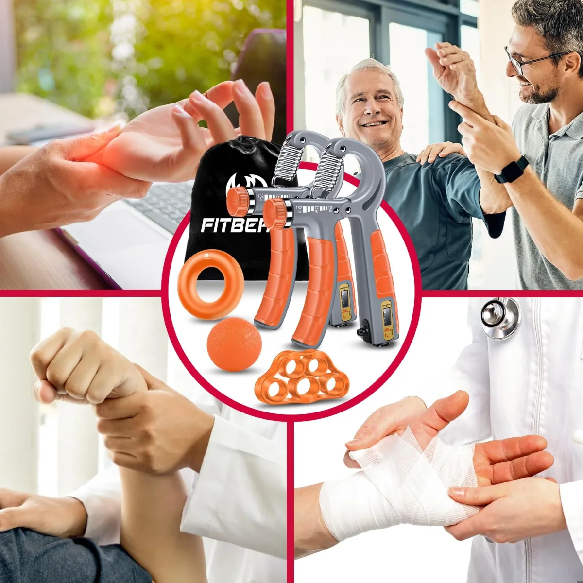 - Integrated Grip Strengthener Set: Equipped with dual counter hand grippers, a grip ball, grip ring, and a finger dexterity stretcher, this kit offers a comprehensive solution to improve grip strength, wrist stability, and overall hand health.
