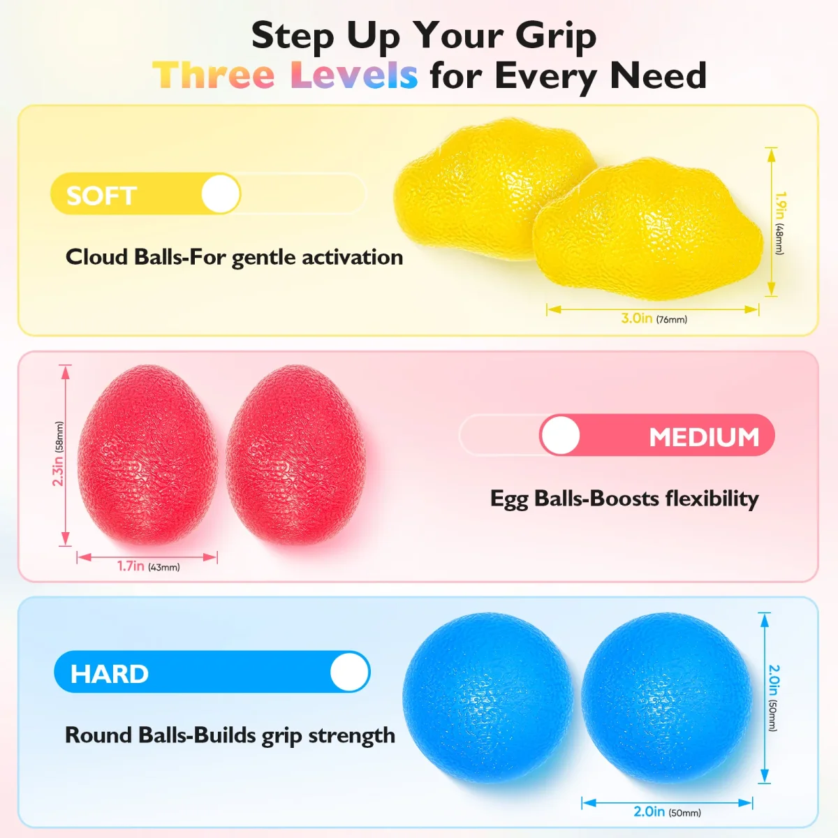 FitBeast Stress Balls for Adults, Hand Exercise Balls 6 Pack, Stress Relief & Grip Strength Trainer, Squishy Balls & Squeeze Balls for Arthritis, Carpal Tunnel, Hand Therapy with 3 Resistance Levels-Yelow Red Blue
