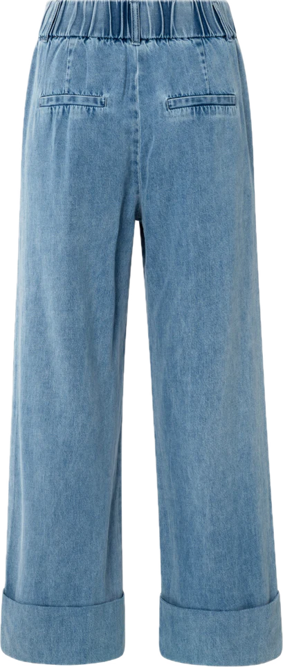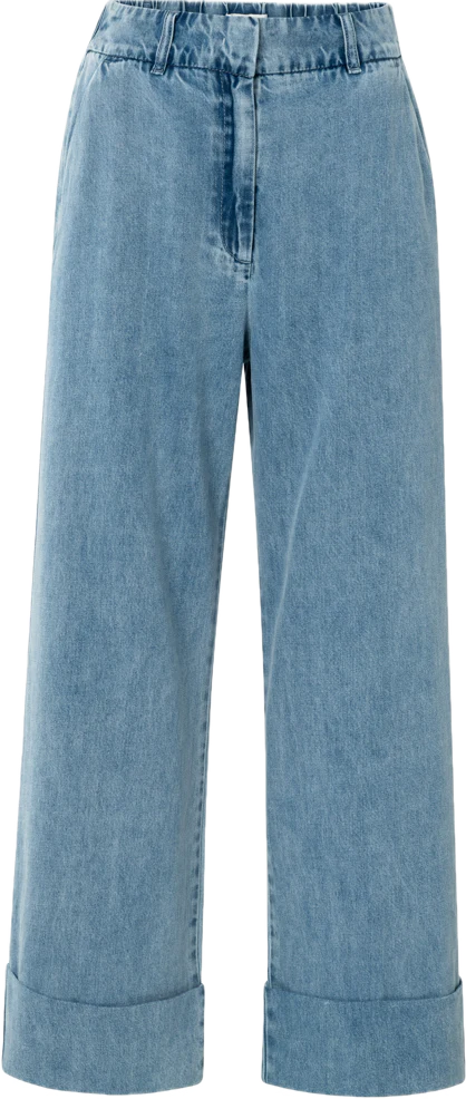 Ce jean confortable fait à partir d’une matière douce a une coupe ample et droite au niveau des jambes. La taille élastiquée apporte un maximum de confort tandis que les revers aux chevilles ajoutent une touche de fantaisie. Il a des poches en fente à l’avant et de fausses poches arrières. Parfait pour créer un look décontracté et tendance.