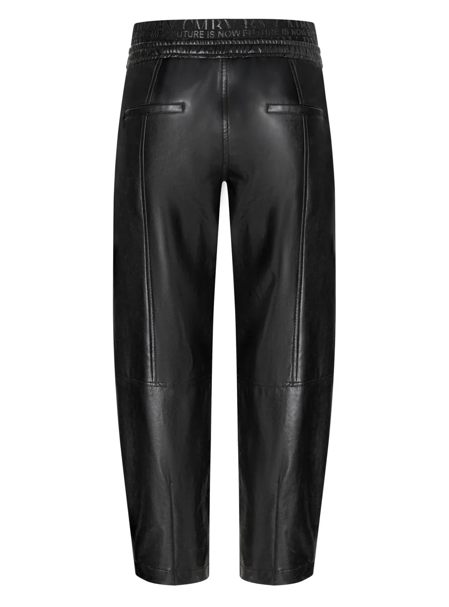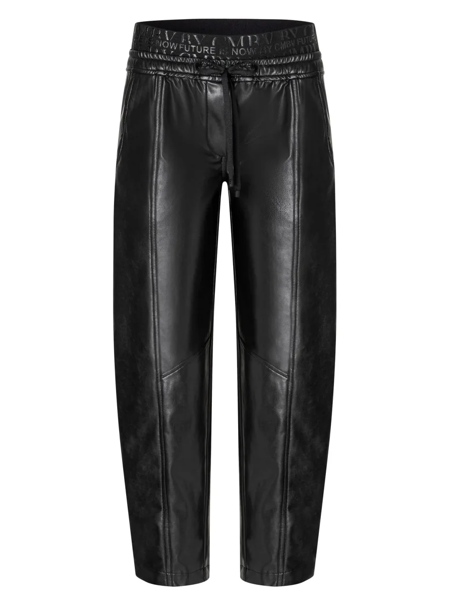 Avec son fini cuir et sa coupe moderne à jambe fuselée, le pantalon Eden de Cambio redéfinit l’élégance urbaine. Sa taille élastique ornée du message «?Future is now?» et son cordon ajustable lui confèrent un esprit résolument contemporain, sans compromettre le confort.