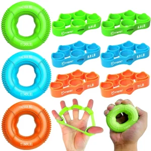 FitBeast Hand Grip Strengthener Set, 9-Piece Finger Exerciser & Stress Relief Kit–Includes Grip Rings, Stress Balls, Finger Stretchers for Strength, Flexibility, Rehab & Pain Relief